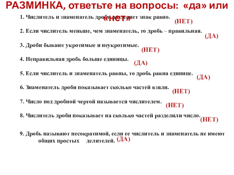 РАЗМИНКА, ответьте на вопросы: «да» или «нет»