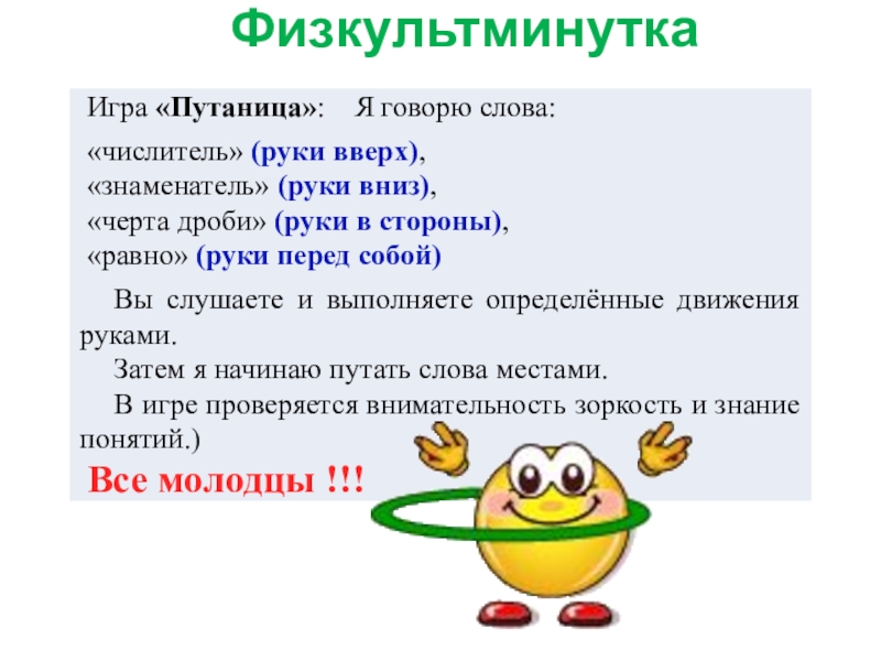 Дроби бывают укротимые и неукротимые. 4. Неправильная дробь больше единицы. 5. Если числитель и знаменатель равны, то дробь равна единице. 6. Знаменатель дроби показывает сколько частей взяли.7. Число под дробной чертой называется числителем.