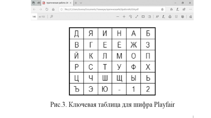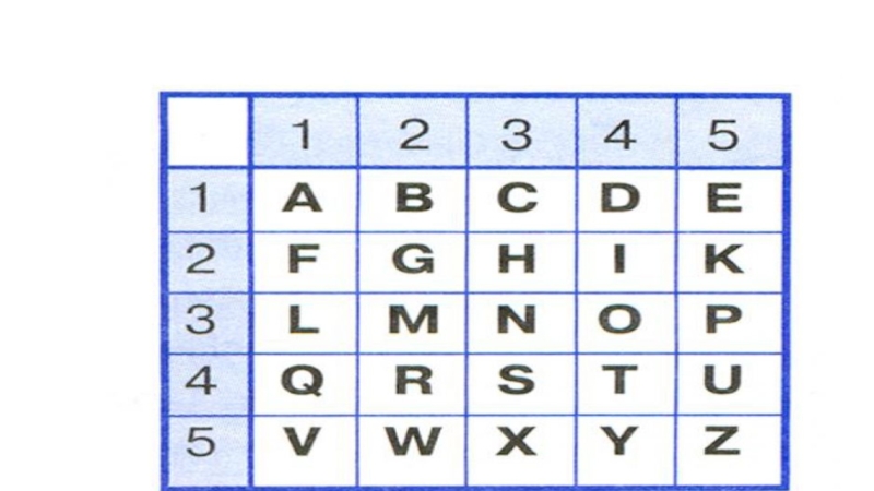 мировой войны. Основой шифра Плейфейра является шифрующая таблица со случайно расположенными буквами алфавита исходных сообщений.
