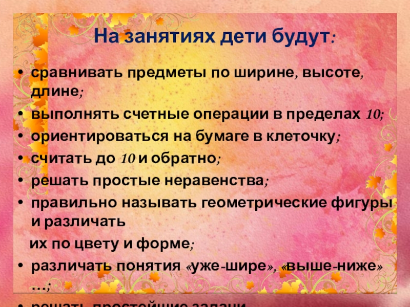 На занятиях дети будут: