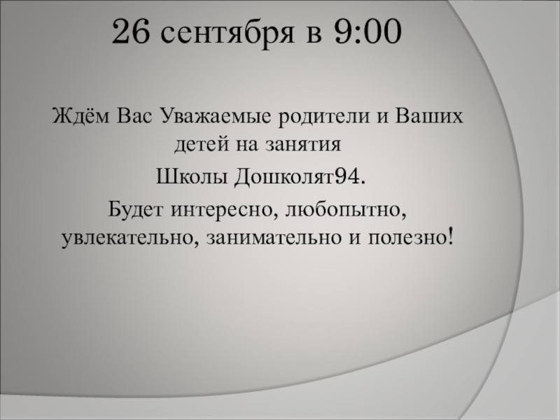 Если не удалось найти и скачать доклад-презентацию, Вы можете заказать его на нашем сайте. Мы постараемся найти нужный Вам материал и отправим по электронной почте. Не стесняйтесь обращаться к нам, если у вас возникли вопросы или пожелания: