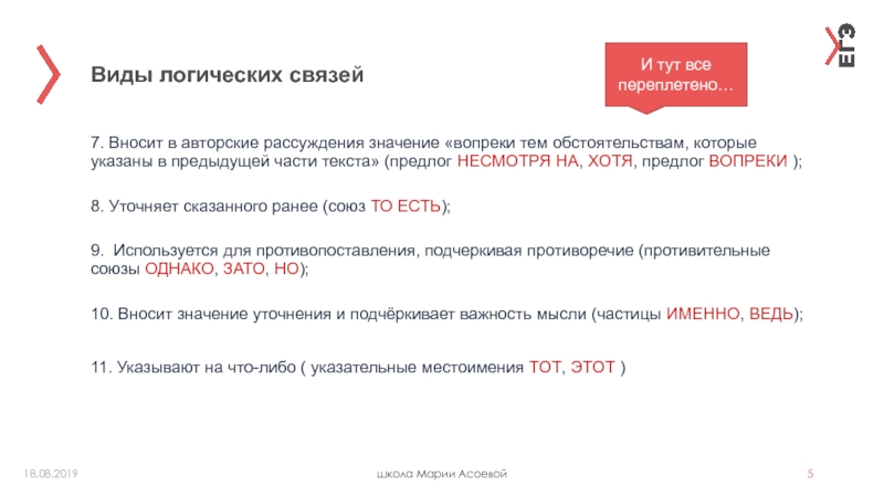 6. Поясняет то, о чём говорилось прежде (вводные слова НАПРИМЕР, ТАК);