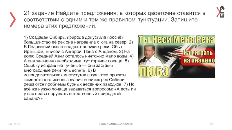 Слайд 2021 задание Найдите предложения, в которых тире ставится в соответствии