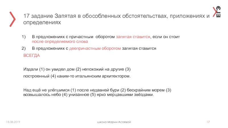 Слайд 1817 задание Запятая в обособленных обстоятельствах, приложениях и определениях