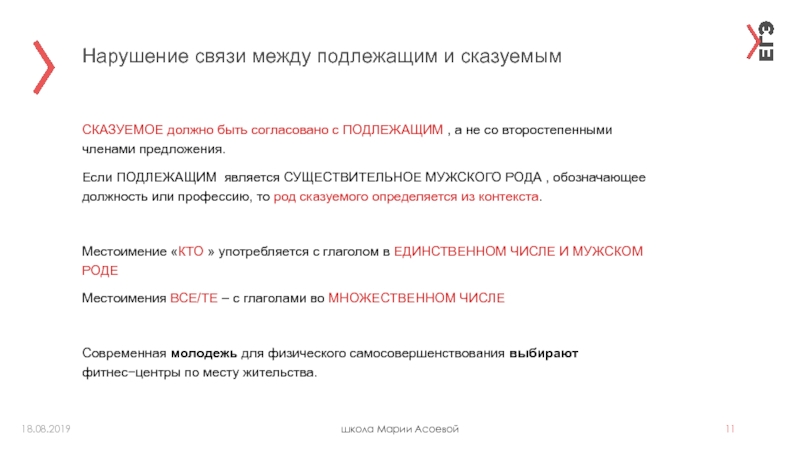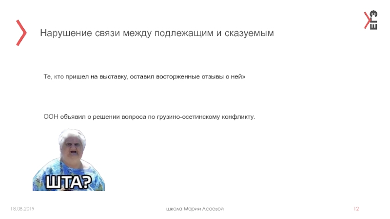 Слайд 12Нарушение связи между подлежащим и сказуемым