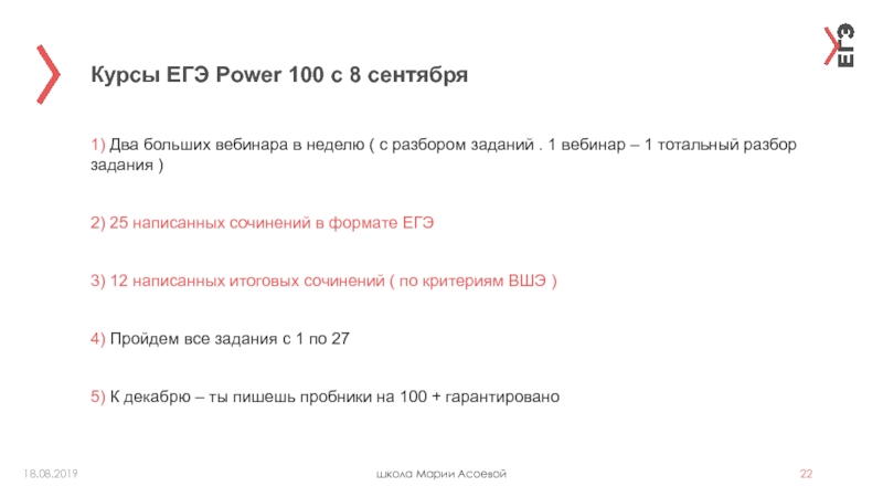Слайд 24Курсы ЕГЭ Power 100 с 8 сентября