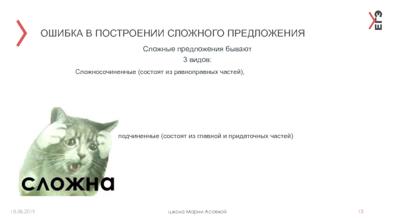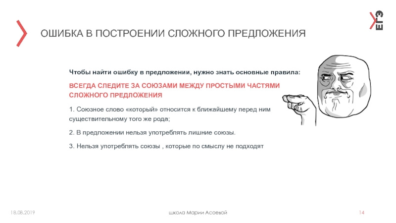 Слайд 14ОШИБКА В ПОСТРОЕНИИ СЛОЖНОГО ПРЕДЛОЖЕНИЯ