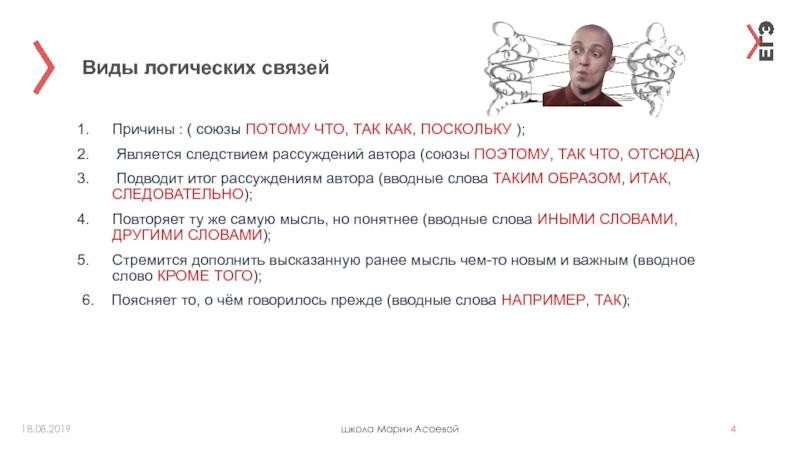 Является следствием рассуждений автора (союзы ПОЭТОМУ,