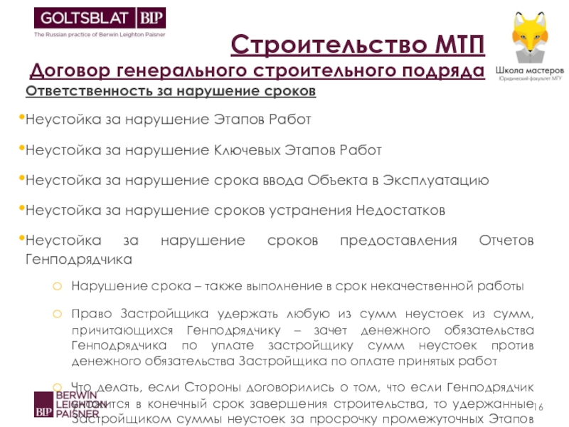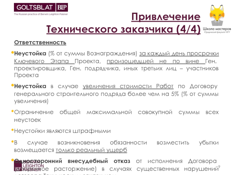 Право Застройщика привлечь за счет Генподрядчика третье лицо для устранения недостатков и /или выполнения отдельных Работ