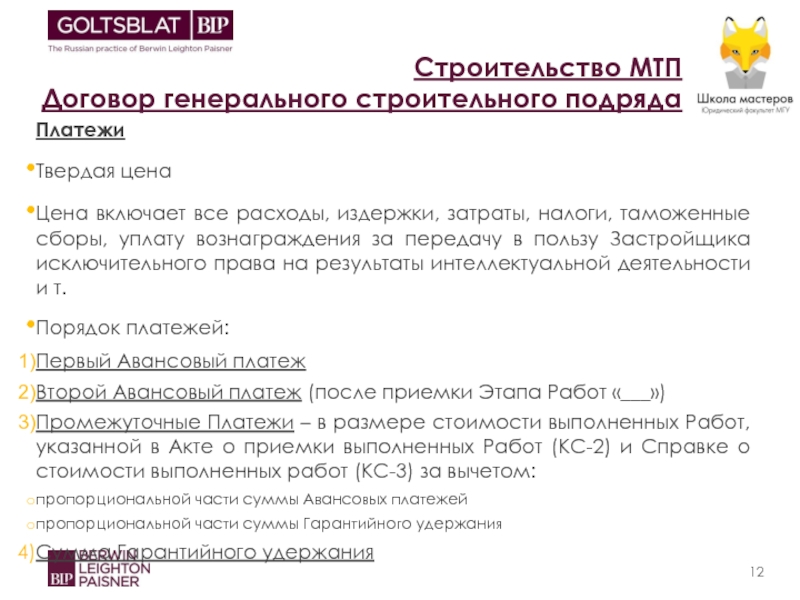 Удержание в размере 10% от общей Цены Договора из каждого промежуточного платежа