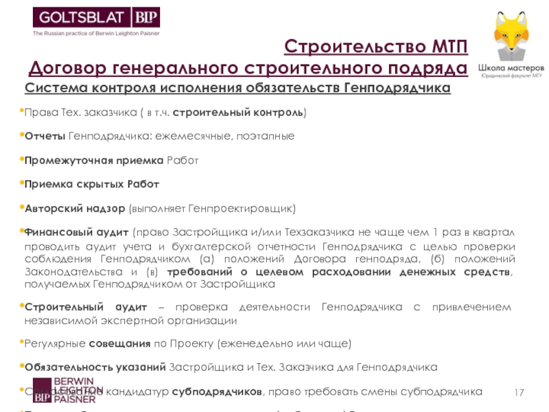 Обязательность указаний Застройщика и Тех. Заказчика для Генподрядчика