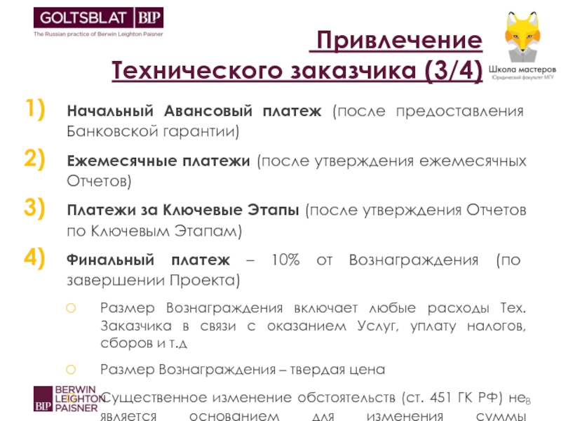Финальный платеж – 10% от Вознаграждения (по завершении Проекта)