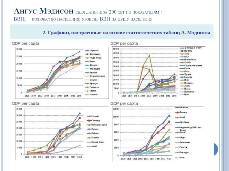 Слайд 6Ангус Мэдисон свел данные за 200 лет по показателям :