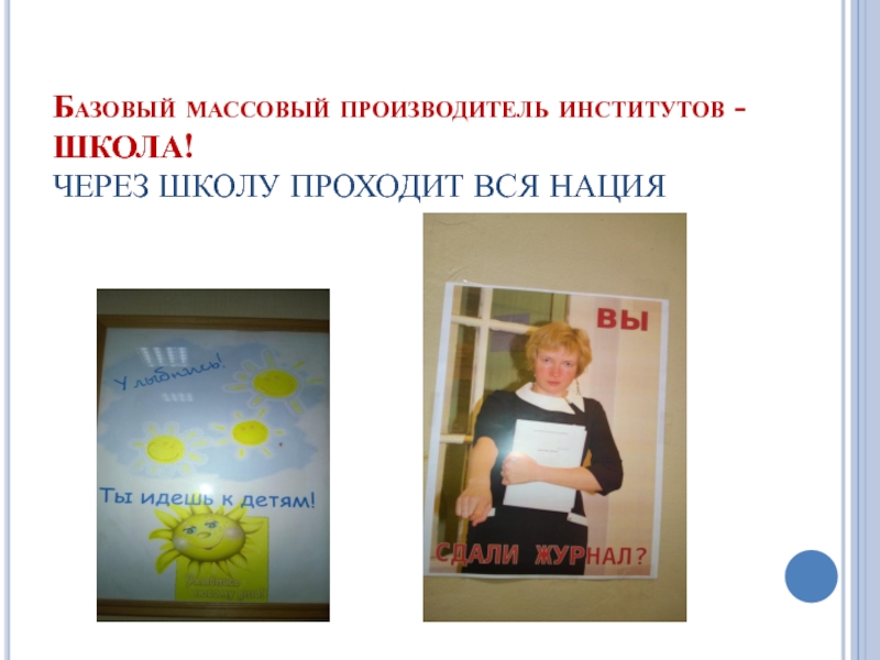 Слайд 12Базовый массовый производитель институтов - ШКОЛА!