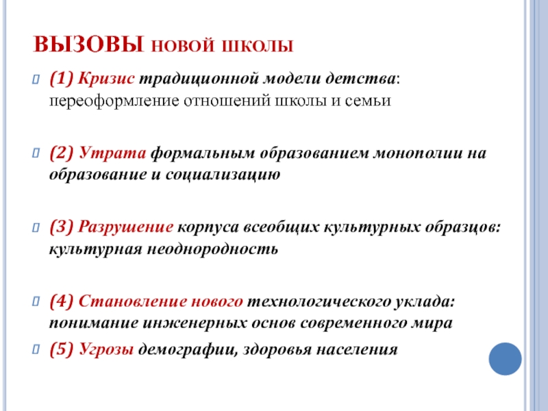 (1) Кризис традиционной модели детства: переоформление отношений школы
