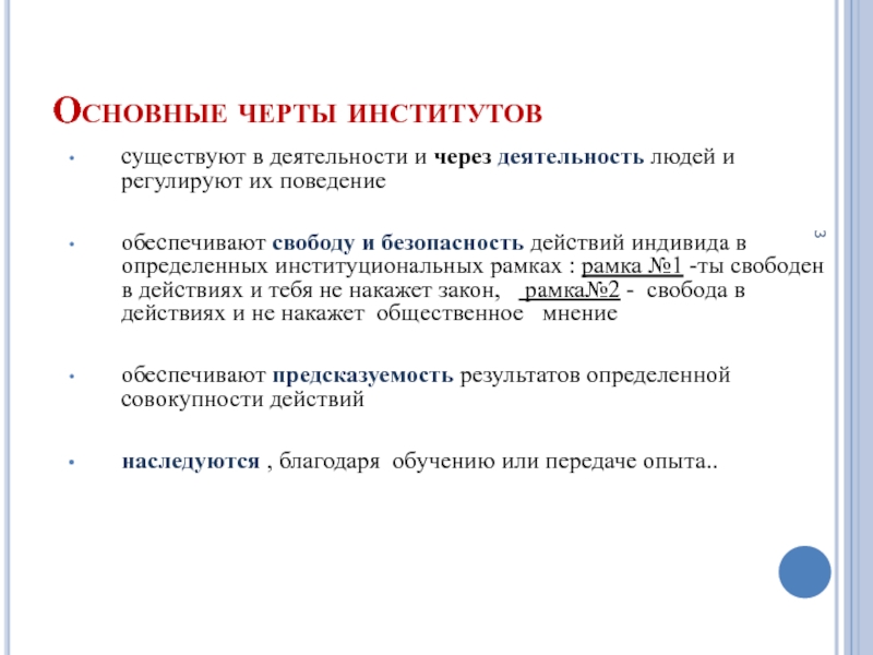 определенных институциональных рамках : рамка №1 -ты свободен в действиях и тебя не накажет закон, рамка№2 - свобода в действиях и не накажет общественное мнение