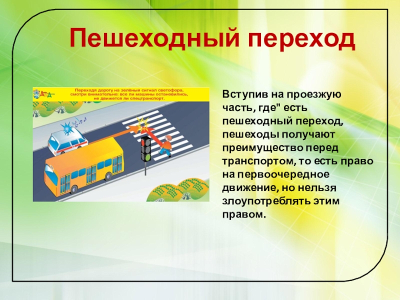 где" есть пешеходный переход, пешеходы получают преимущество перед транспортом, то