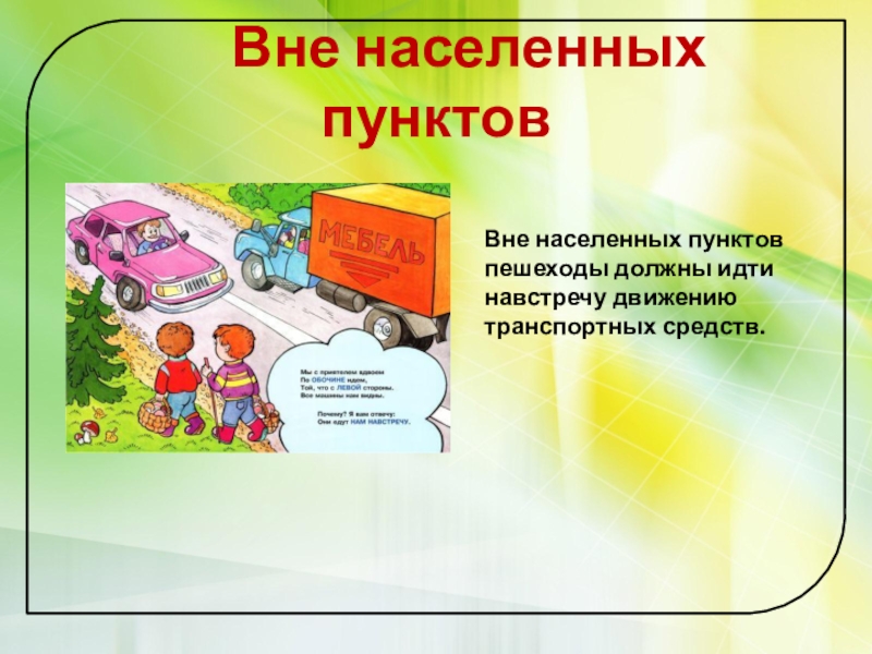 пунктов пешеходы должны идти навстречу движению транспортных средств.