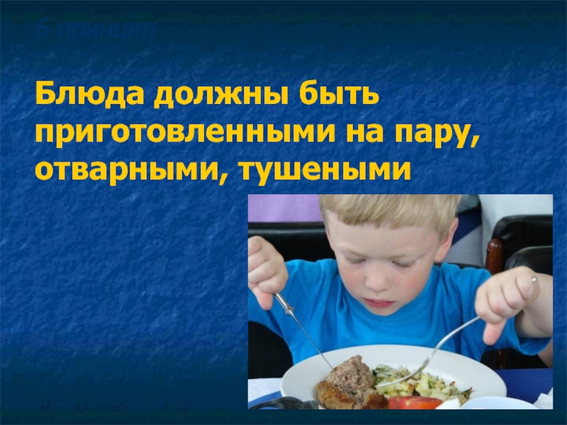 6 принцип  Блюда должны быть приготовленными на пару, отварными, тушеными