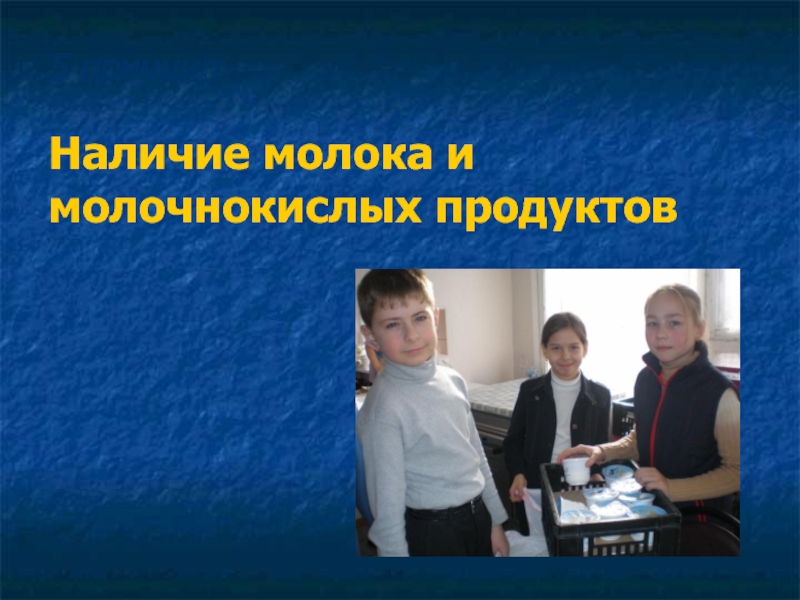 Слайд 115 принцип Наличие молока и молочнокислых продуктов