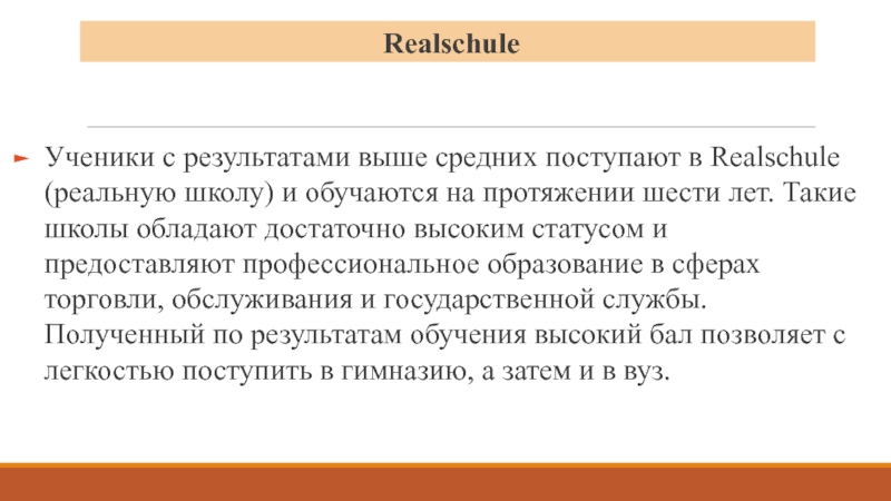 Ученики с результатами выше средних поступают в Realschule (реальную