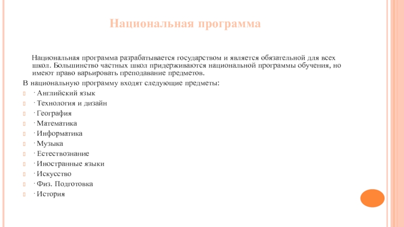 для всех школ. Большинство частных школ придерживаются национальной программы обучения,