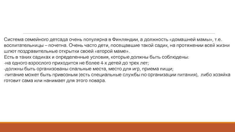 Слайд 18Система семейного детсада очень популярна в Финляндии, а должность «домашней