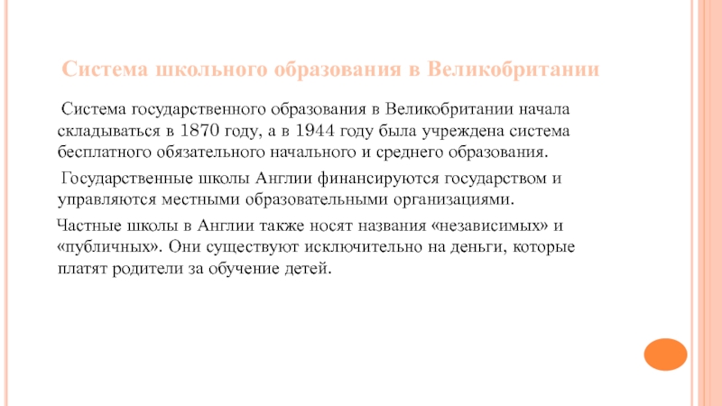 Великобритании начала складываться в 1870 году, а в 1944 году