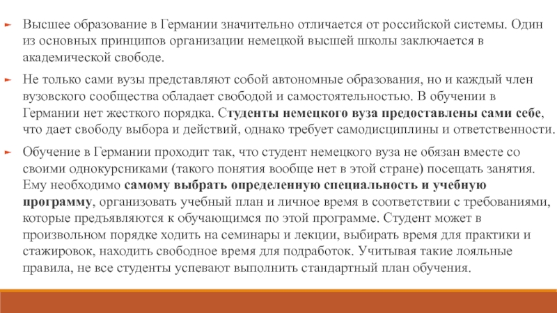 Слайд 14Высшее образование в Германии значительно отличается от российской системы. Один