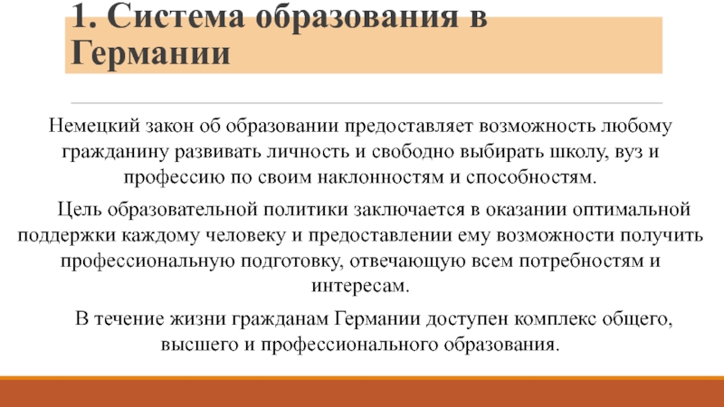 В течение жизни гражданам Германии доступен комплекс общего, высшего и профессионального образования.