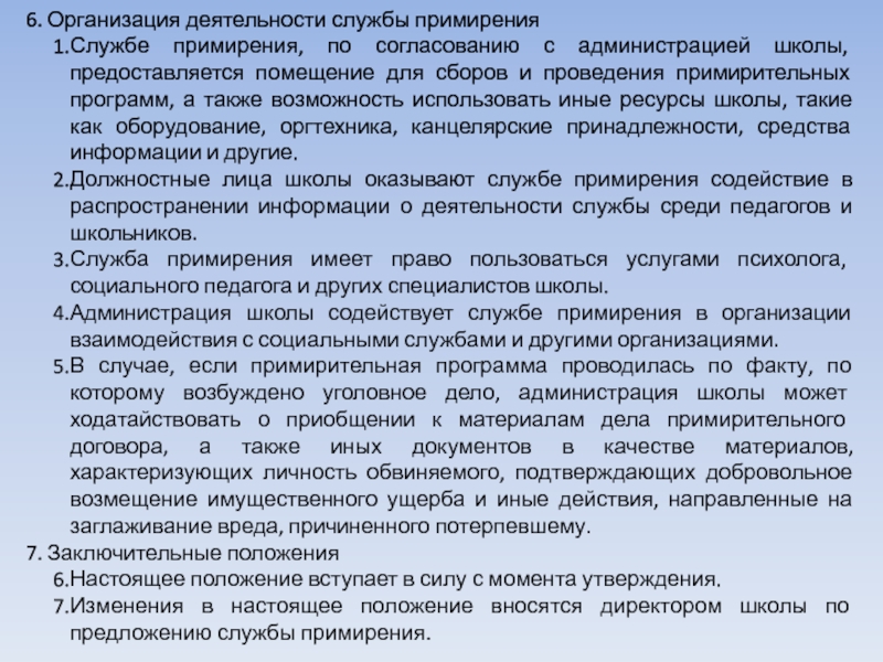 Слайд 20Положение о школьной службе примирения