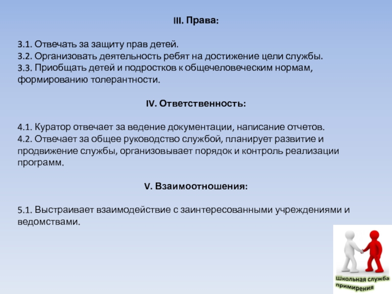 3.1. Отвечать за защиту прав детей.