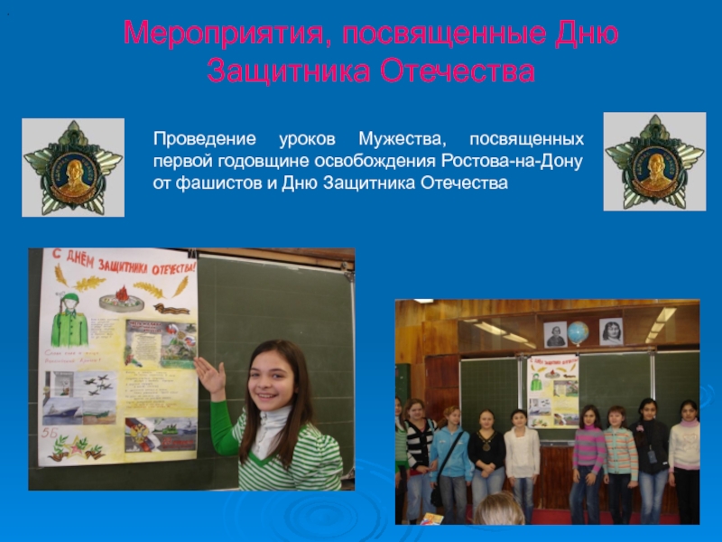 Проведение уроков Мужества, посвященных первой годовщине освобождения Ростова-на-Дону от фашистов и Дню Защитника Отечества