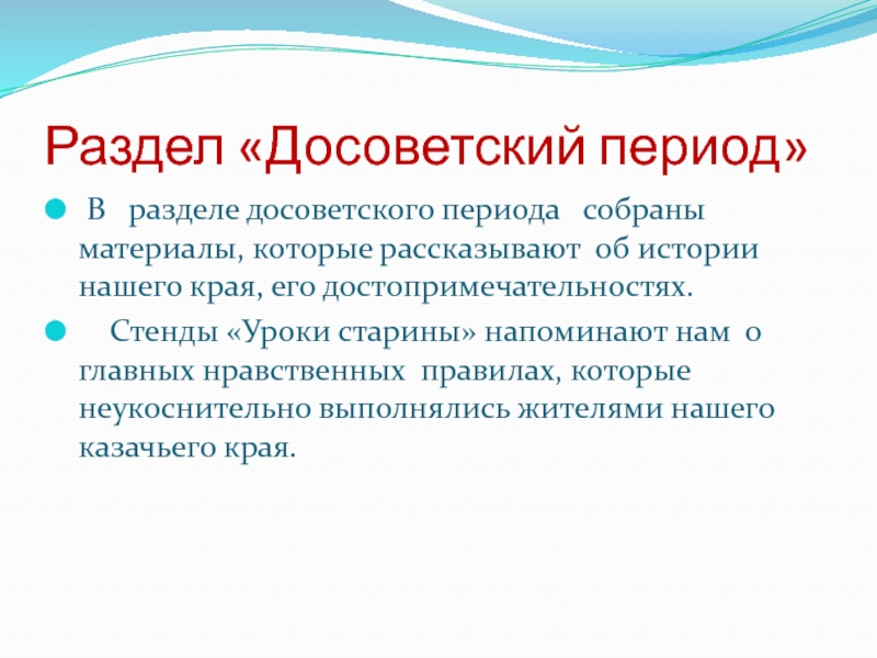 Слайд 13Раздел «Досоветский период»
