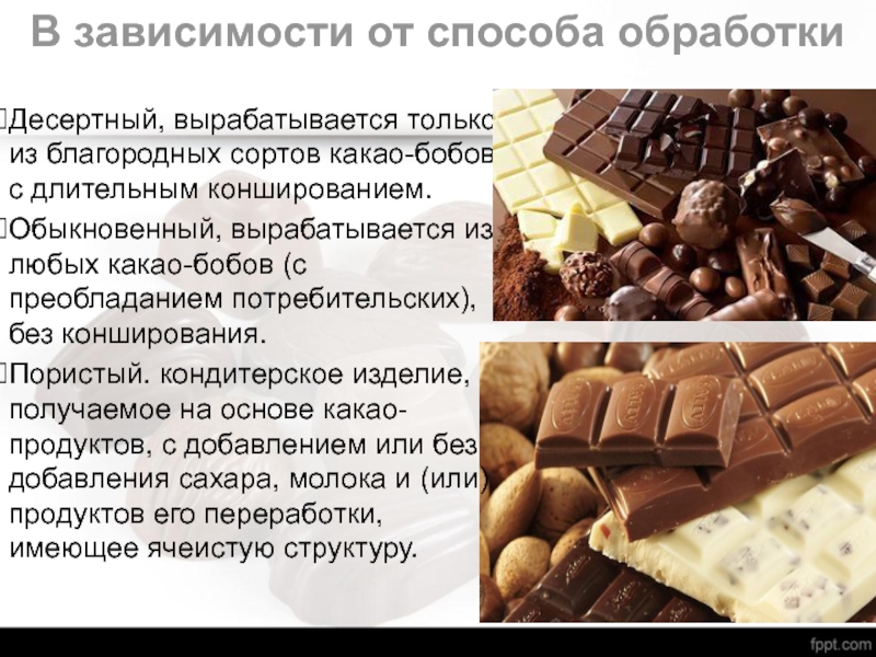 Слайд 8Шоколад классифицируется по нескольким признакам