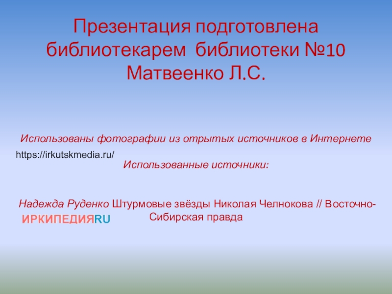 Презентация подготовлена библиотекарем блиотеки №10 Матвеенко Л.С.