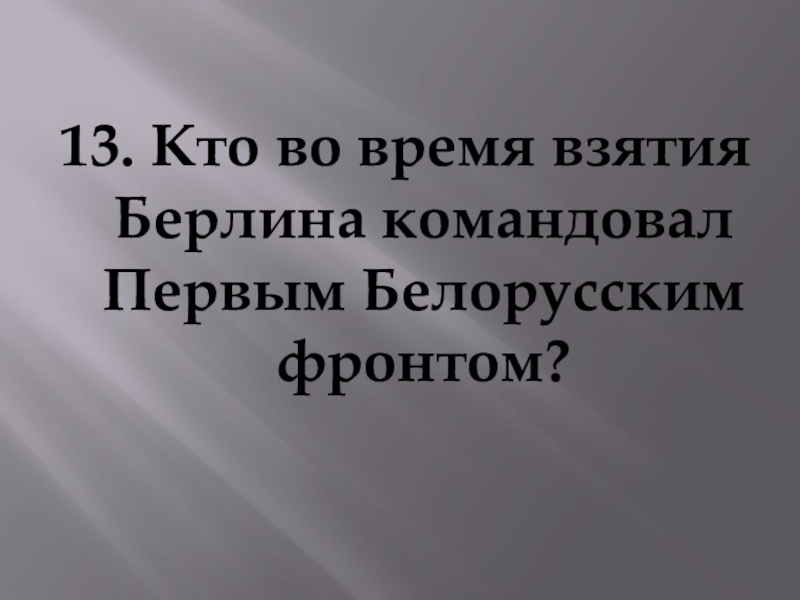 Слайд 1413. Кто во время взятия Берлина командовал Первым Белорусским фронтом?
