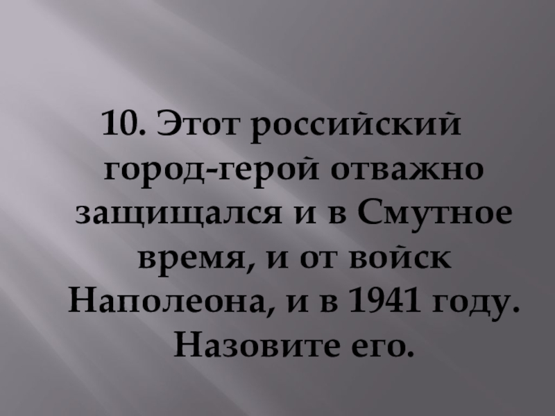 Слайд 1110. Этот российский город-герой отважно защищался и в Смутное время,