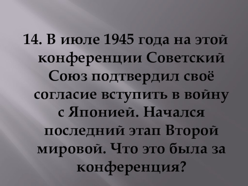 Слайд 1514. В июле 1945 года на этой конференции Советский Союз