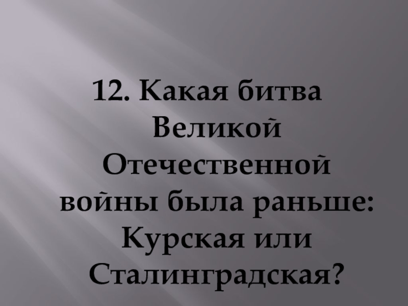Слайд 1312. Какая битва Великой Отечественной войны была раньше: Курская или