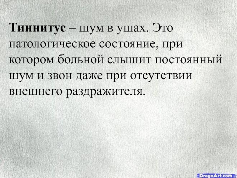 Слайд 2Тиннитус – шум в ушах. Это патологическое состояние, при котором
