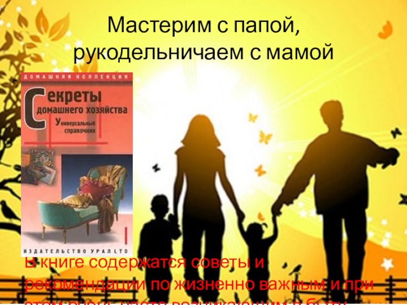 Слайд 14Мастерим с папой, рукодельничаем с мамой