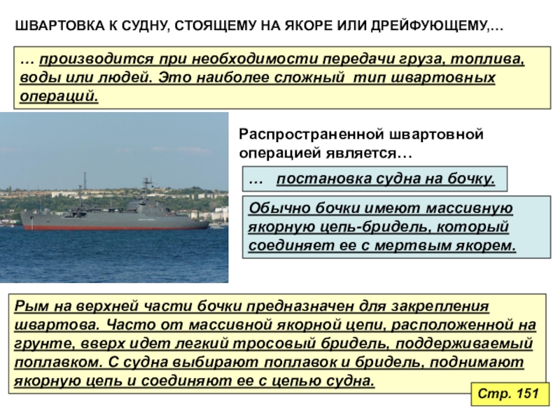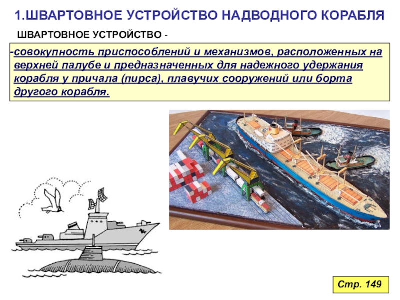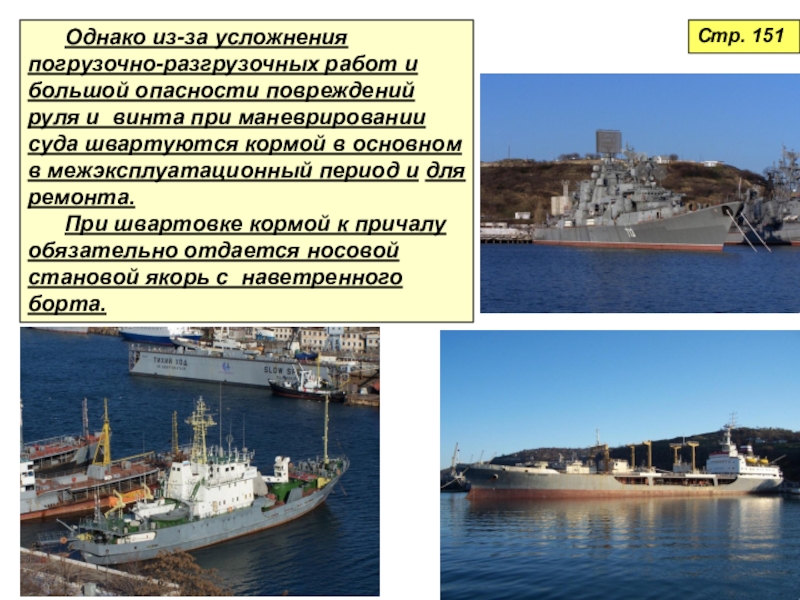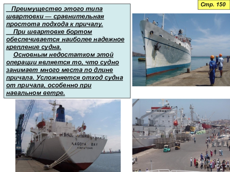 у причала (пирса), плавучих сооружений или борта другого корабля.Стр. 149