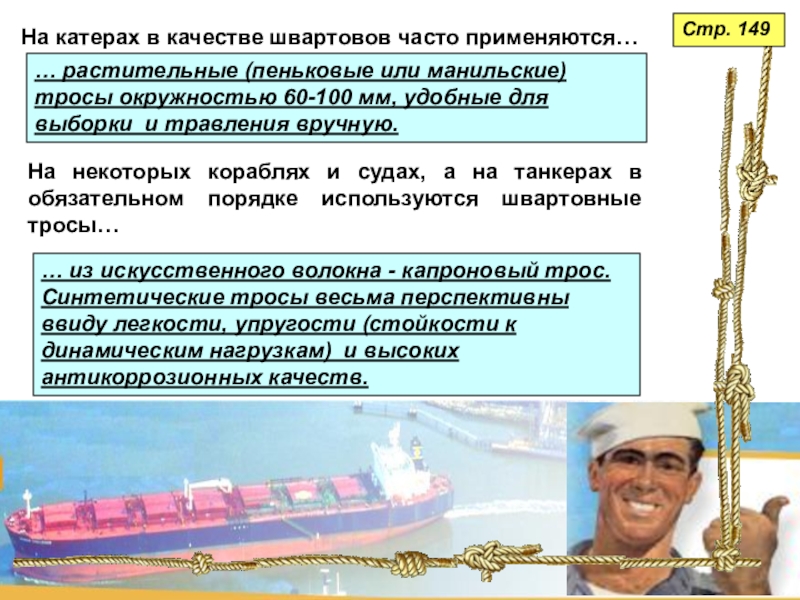 На некоторых кораблях и судах, а на танкерах в обязательном порядке используются швартовные тросы…