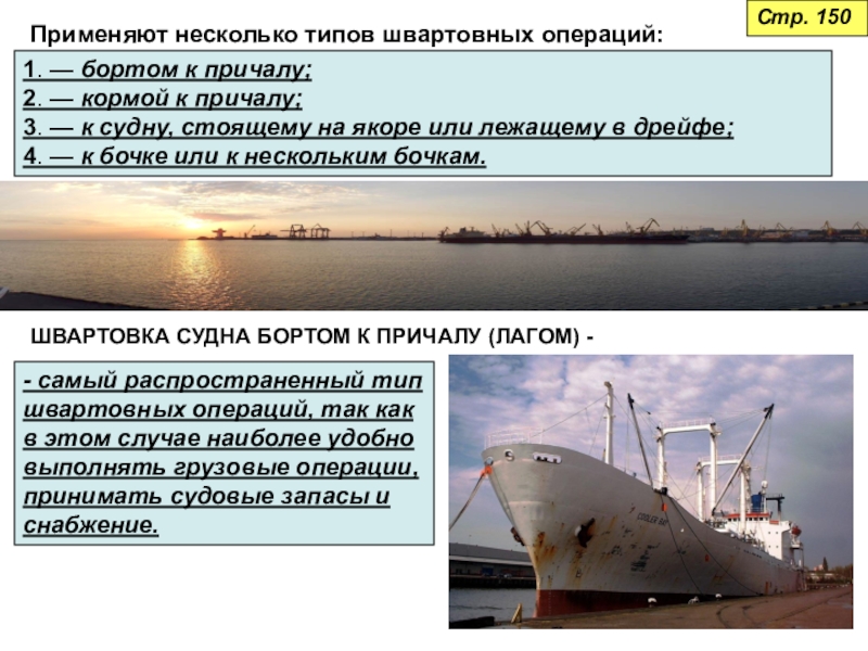 - самый распространенный тип швартовных операций, так как в этом случае наиболее удобно выполнять грузовые операции, принимать судовые запасы и снабжение.