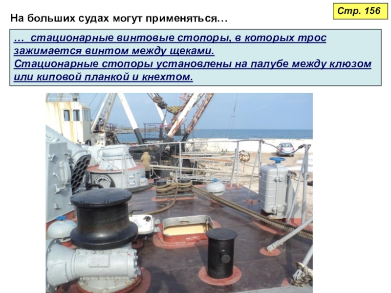 4. — стопоры тросовые, предназначенные для временного удержания швартовного каната;