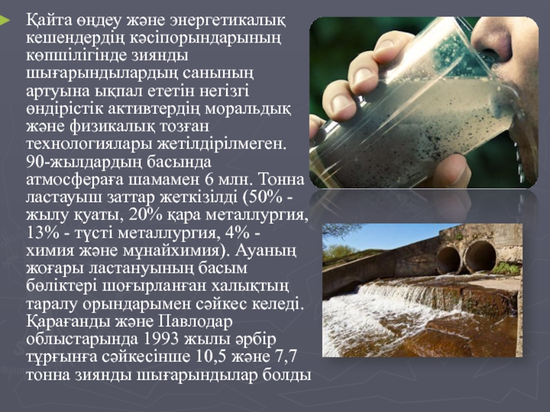 Слайд 9Қазақстандағы тау-кен металлургиялық кәсіпорындарының қызметі нәтижесінде 20 млрд. Тоннадан астам