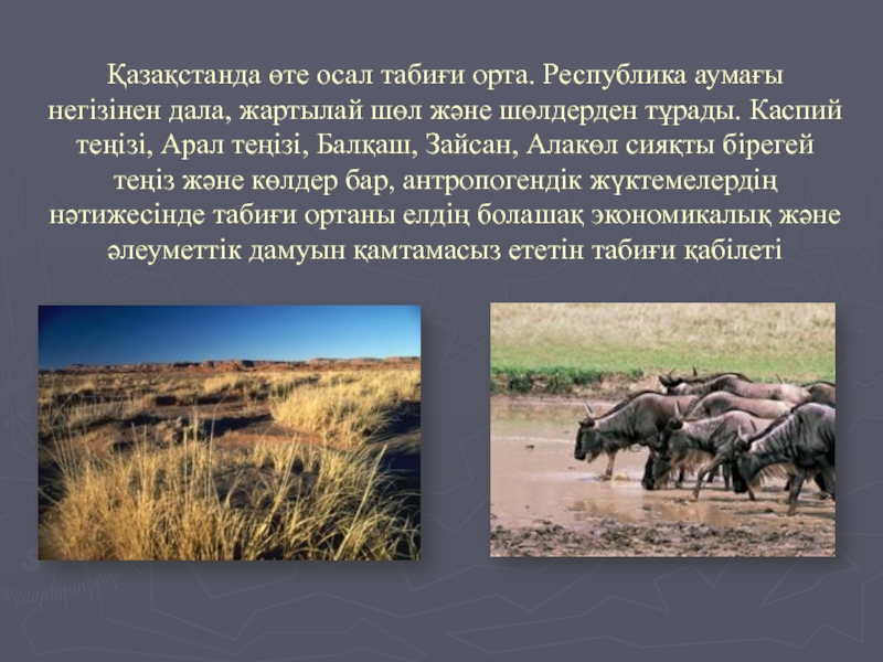 Слайд 2Қазақстанда өте осал табиғи орта. Республика аумағы негізінен дала, жартылай