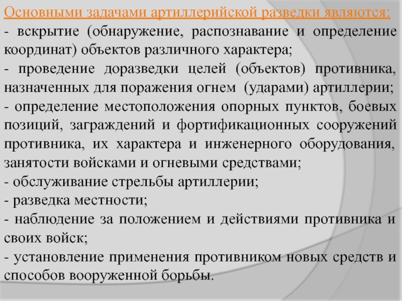 Слайд 11Основными задачами артиллерийской разведки являются: