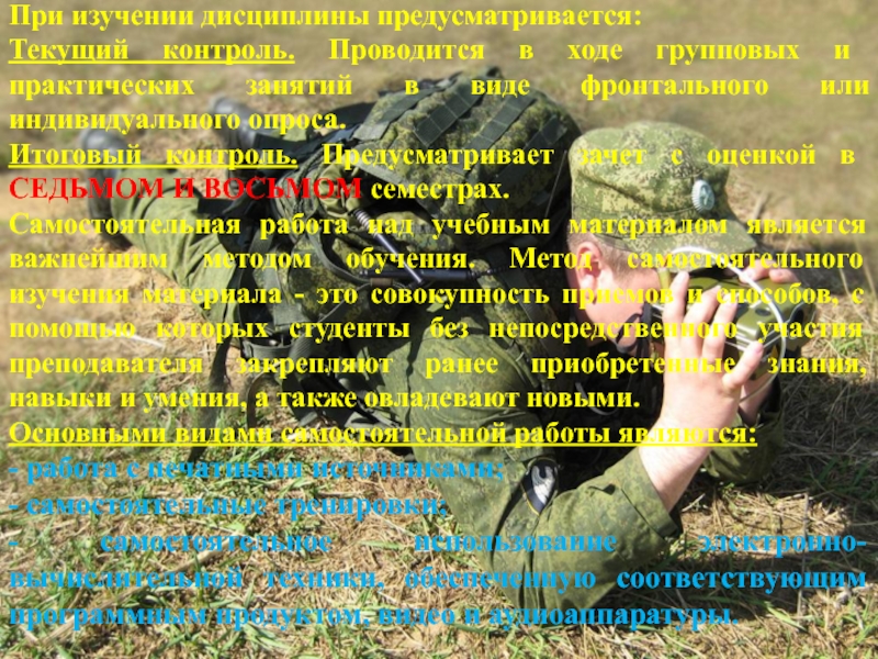 Слайд 62. Построение дисциплины и последовательность сдачи зачетов, рекомендации по самостоятельной